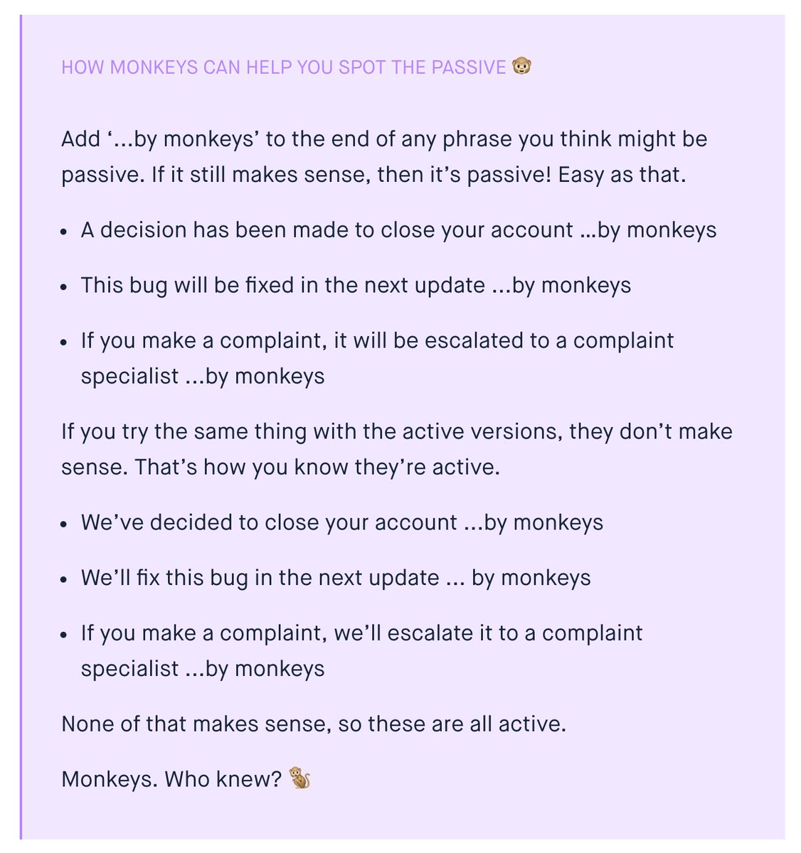 I LOVE this lesson from @monzo about how to spot the passive voice. https://t.co/SosA8myqPF