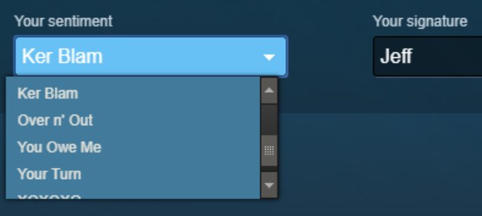 The only valid sentiment for a Steam gift is, and shall always be, "Ker Blam". https://t.co/A1q5RI0ZH4