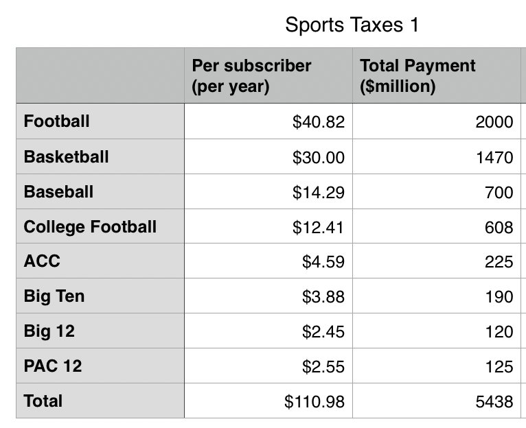 The tax paid by each US cable/sat. subscriber for each type of sport. https://t.co/BYbPhSExyj