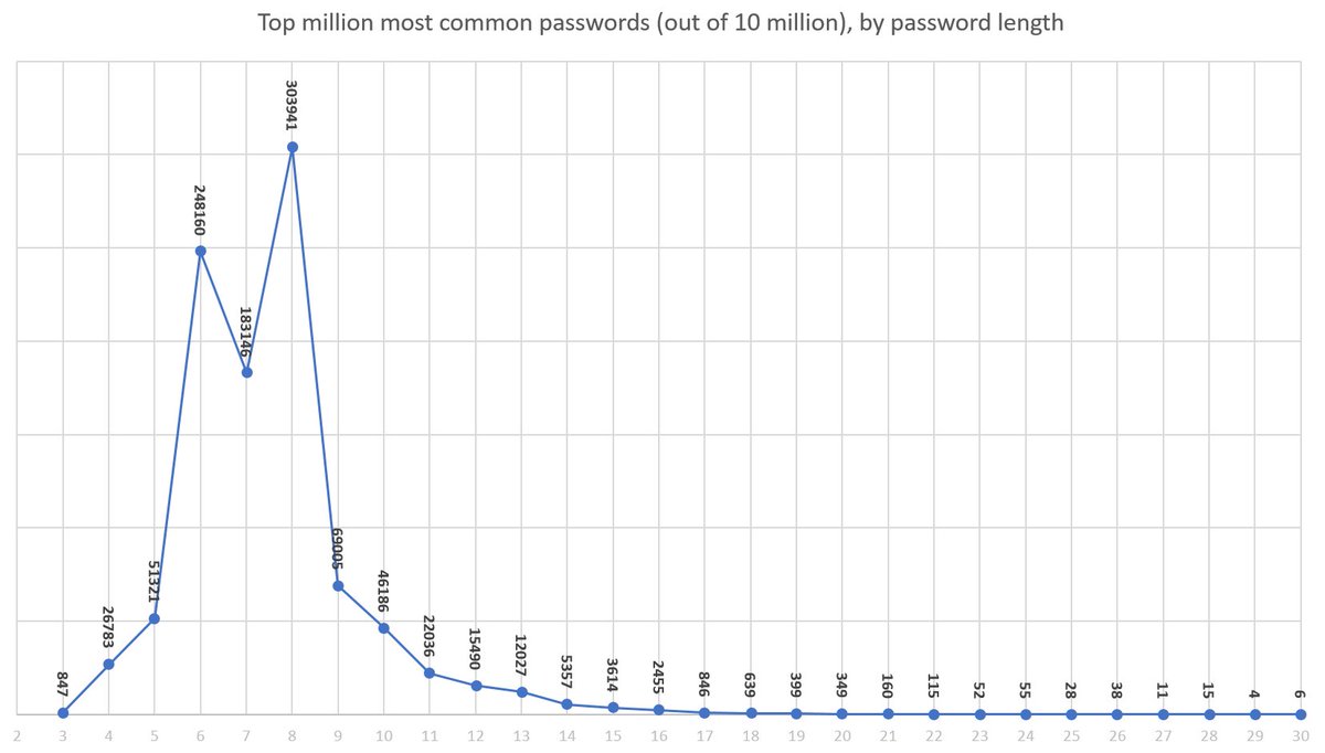 Top million most common passwords, by length. Source: https://t.co/cdZRFLpLvt https://t.co/FhZ8uZvWRw