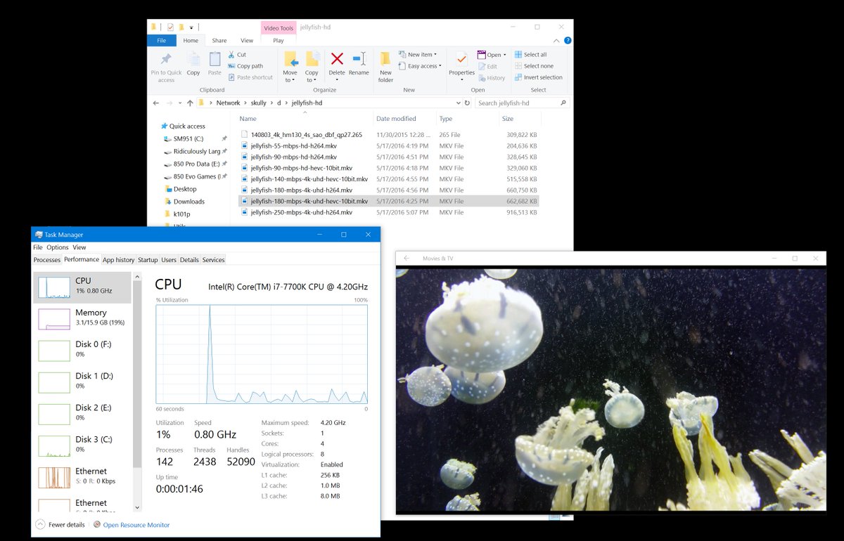 installed a Kaby Lake i7-7700k (drop-in replacement for i7-6700k) and amusing myself with 4k HEVC 10-bit videos. These *destroyed* Skylake. https://t.co/5DI5Jq9s97