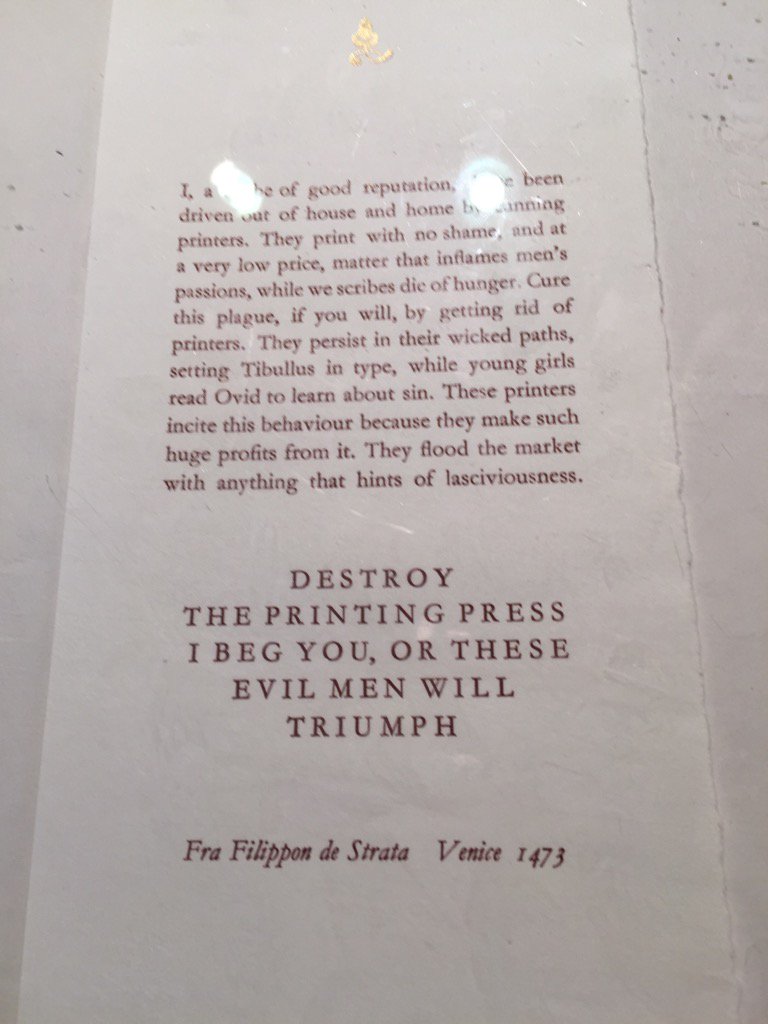 "Destroy the printing press, I beg you, or these evil men will triumph": Venice, 1473 https://t.co/fXTdnmy1Pl