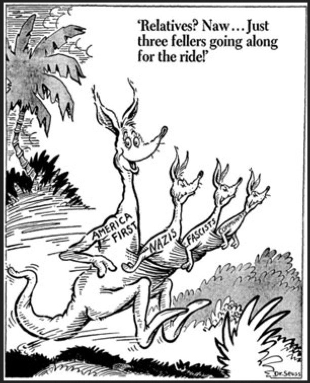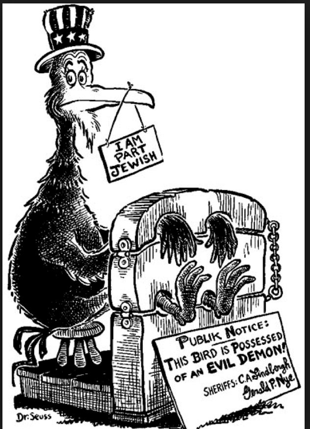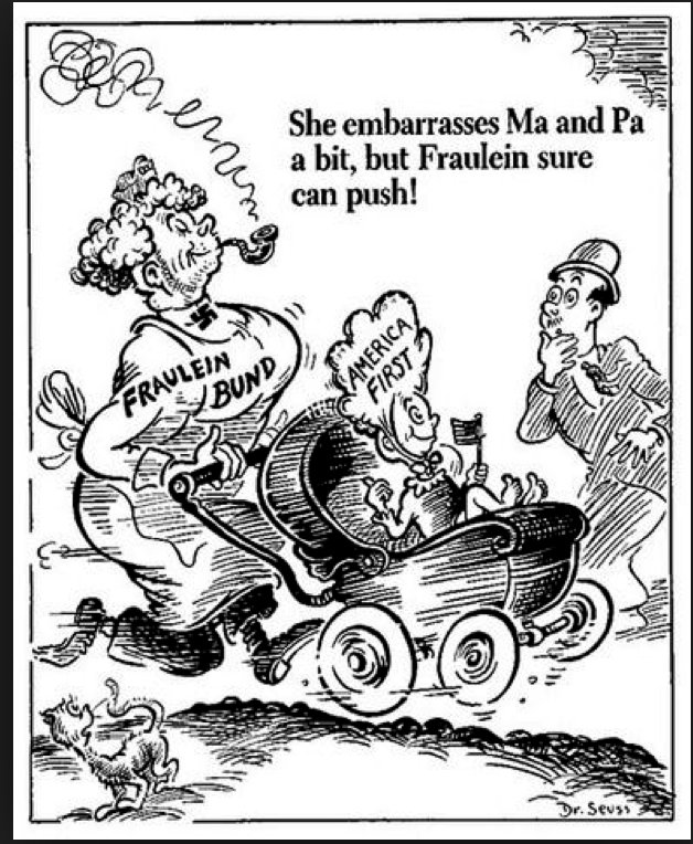 Some Dr. Seuss WWII cartoons about the original "America First" movement. https://t.co/c9SaScfdci