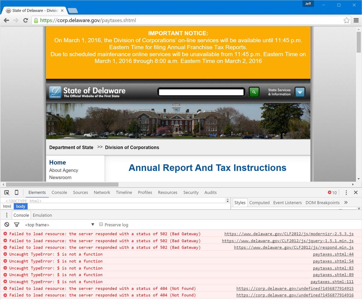 That feeling when you try to pay your Delaware franchise tax on due date and the website doesn't work https://t.co/NitT5w2oAu
