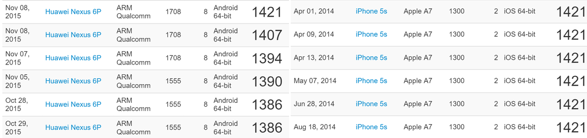 hmm wait, searching again the Nexus 6p gets roughly the same single core score as an 2013 iPhone 5s https://t.co/B9up8tJbWL