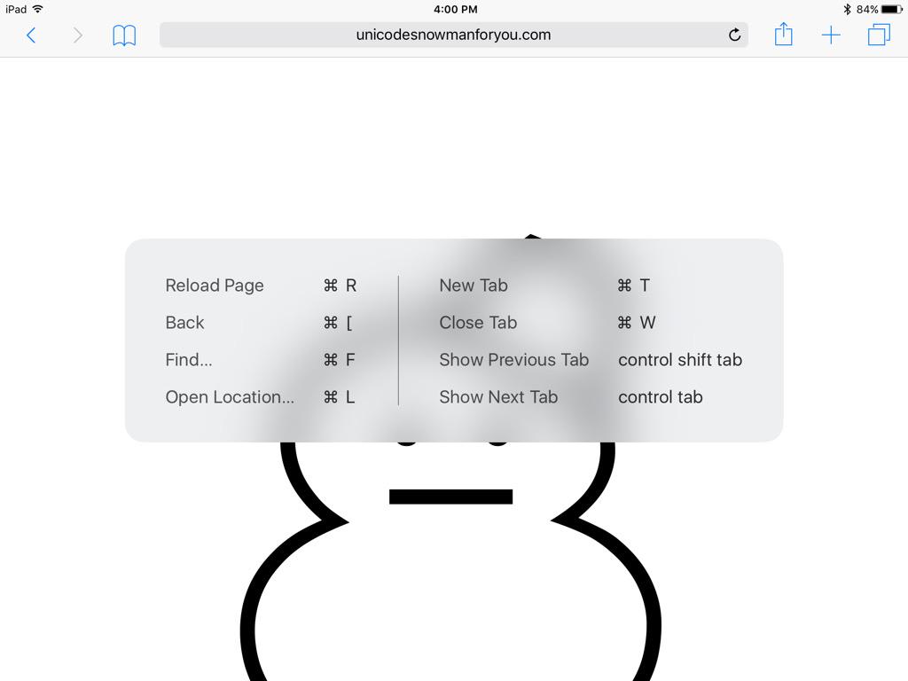 cool: hold down the command key on iPad to see a list of bluetooth keyboard shortcuts in system apps http://t.co/qVgNFRpYvY