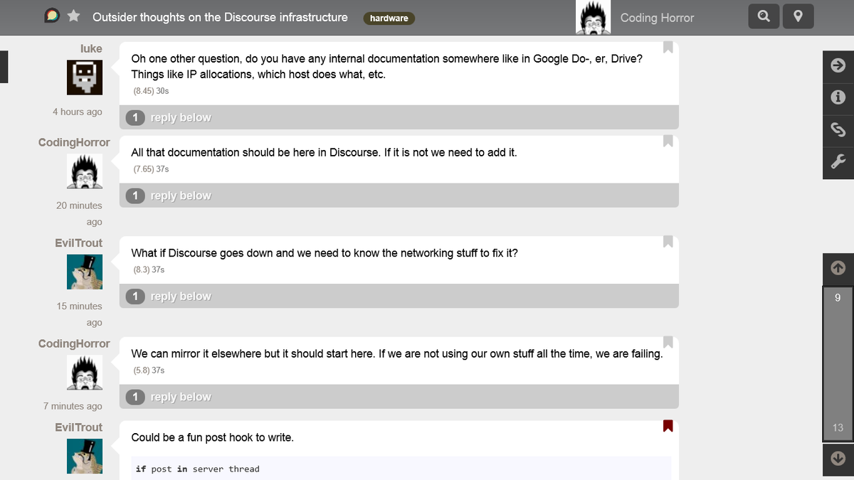 Here is what early versions of @discourse looked like in late 2012 .. just @eviltrout and me at the time https://t.co/koAtfXHa8W