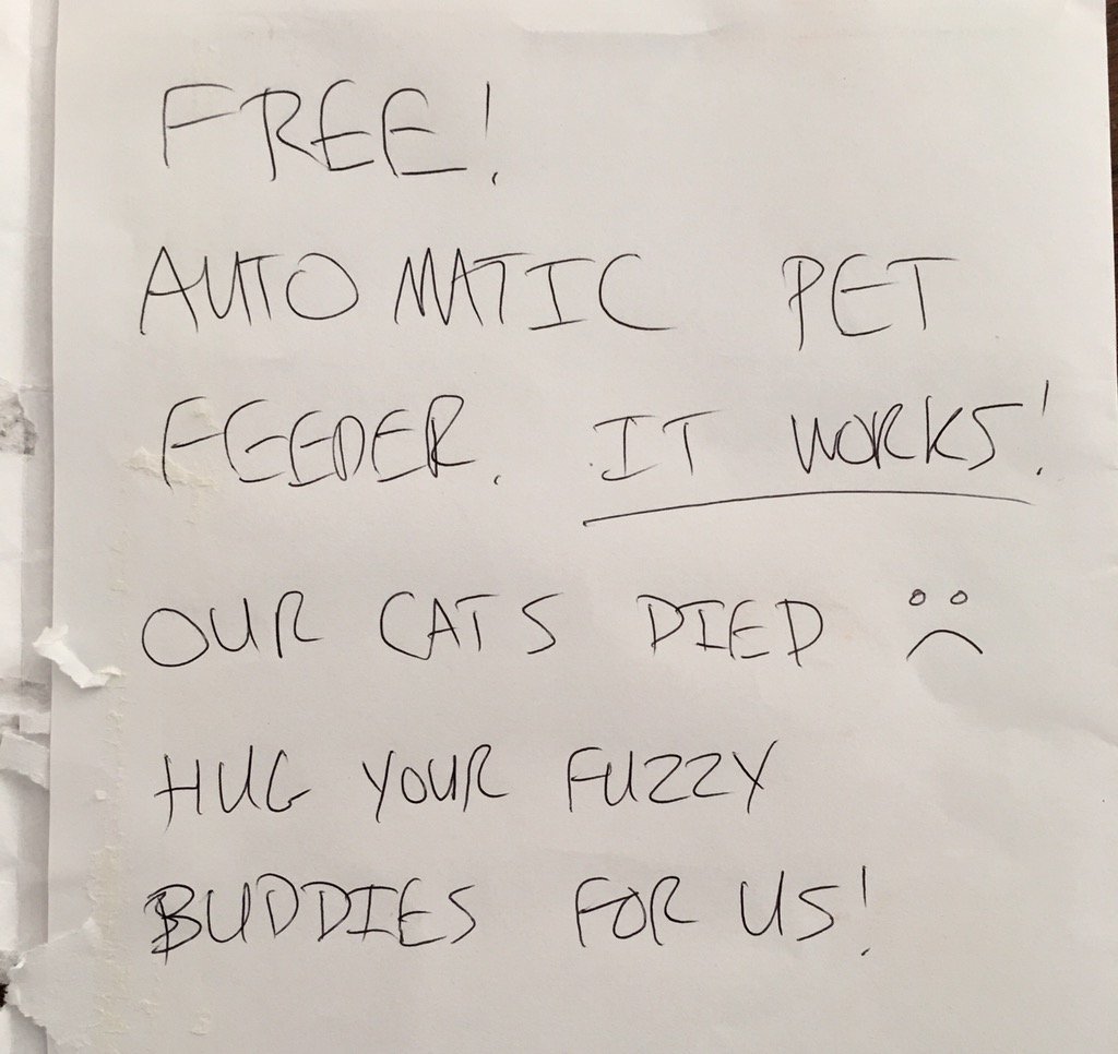 Time to give away our automatic pet feeder :( https://t.co/E6MYw3U5uM