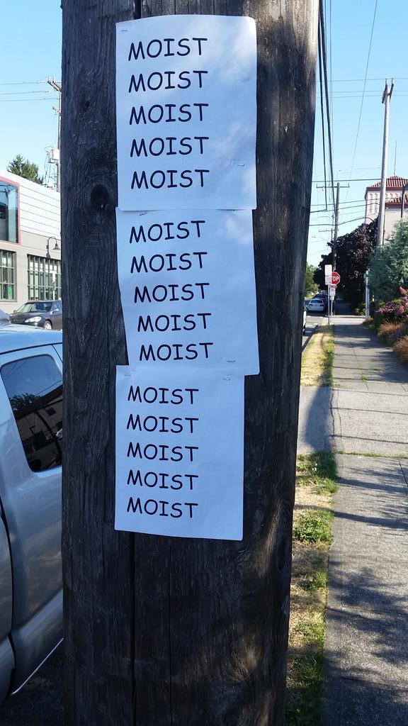 I posted the word MOIST in Comic Sans all around the graphic design school next door http://t.co/pqWv1MIcGO