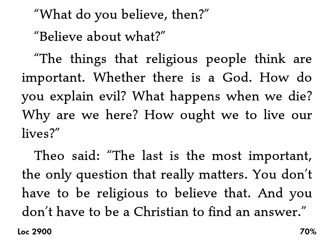 "What do you believe, then?" from the book Children of Men http://t.co/5LRRrS5f5w