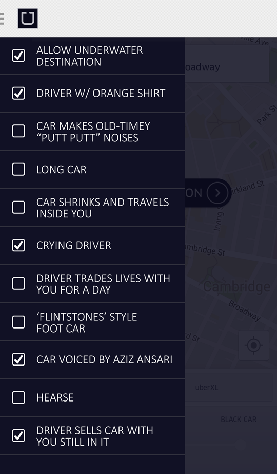 Oh, you don't know about the @Uber secret menu items? http://t.co/biYtLgkbuw