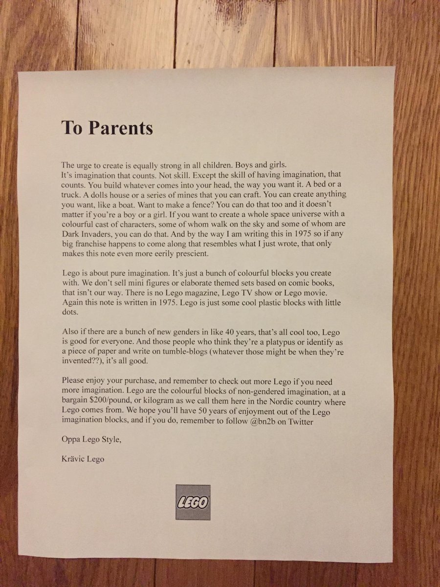 Check out Lego's great letter to parents from 1975: http://t.co/umhgagB4kw