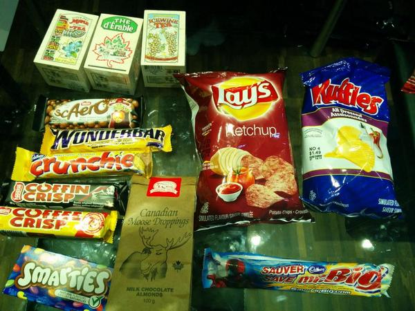 Behold the bevy of Canadian treats @eviltrout put together for us! Not pictured: Ice Wine! http://t.co/wCUhbII3GW