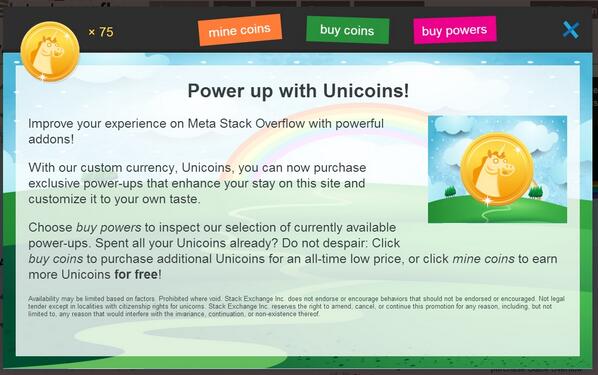 it's finally happened, you can *finally* buy Stack Overflow rep with unicoins! http://t.co/cPhfjgTcaQ