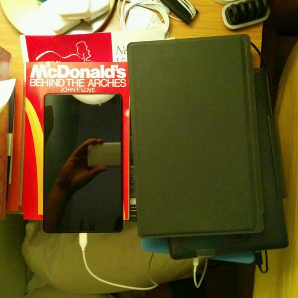 For professionals only: four devices charging on nightstand. Would be five but using phone to take the picture. http://t.co/9sbAYHbF9S