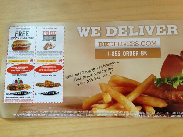 Just got a snail mail that Burger King delivers now. WTF? http://t.co/YqWjqggUa1