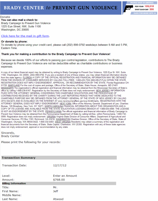 Followed @codinghorror 's lead and donated the amount of (1) Bushmaster A1 Semi-Automatic to the Brady Center to lobb ...