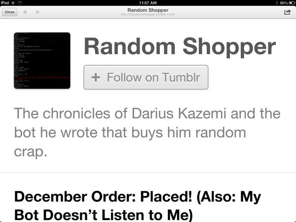 Really tired of clicking through to tumblrs on my iPad and getting INSANELY LARGE TYPE. Wtf? http://t.co/5Ub0Zjlt