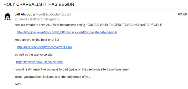 I found the team email I sent the day Stack Overflow went into private beta. Good times... good times. http://t.co/3UIpuGXl
