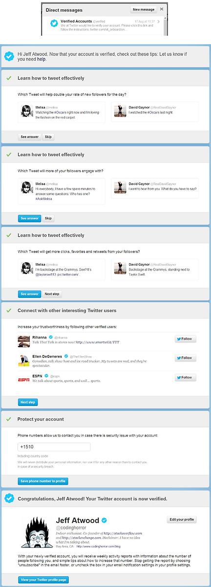 Here is the actual Twitter "verification" process I went through. Exactly as you see here. http://t.co/dR6hY4fk