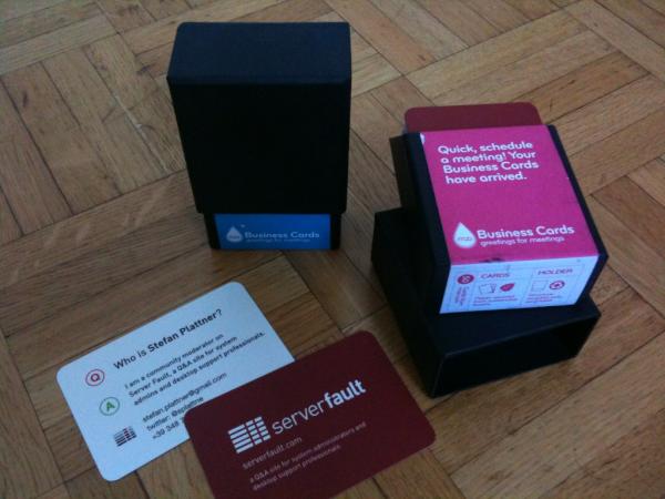Wow, got my @ServerFault moderator business cards! They're awesome. Thanks, @StackExchange! http://t.co/2e66SPW1