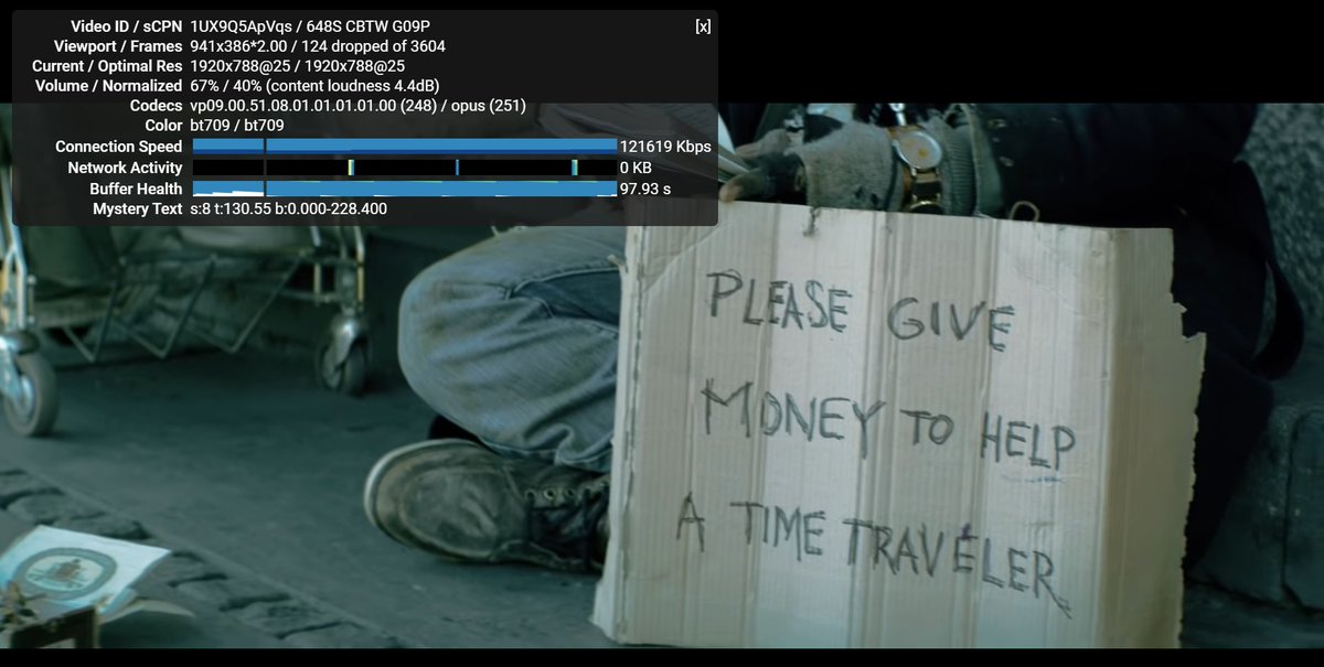 ooo YouTube added Mystery Text to their "Stats for Nerds" option on the videos (right click the video to get there). Catnip! https://t.co/U4mOtkSuq6