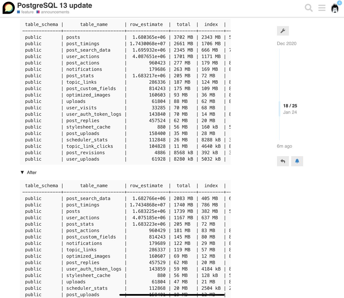 Shout out to team @PostgreSQL — we are seeing huge reduction in index sizes when upgrading to PG13 👏 https://t.co/6erVY3boYF