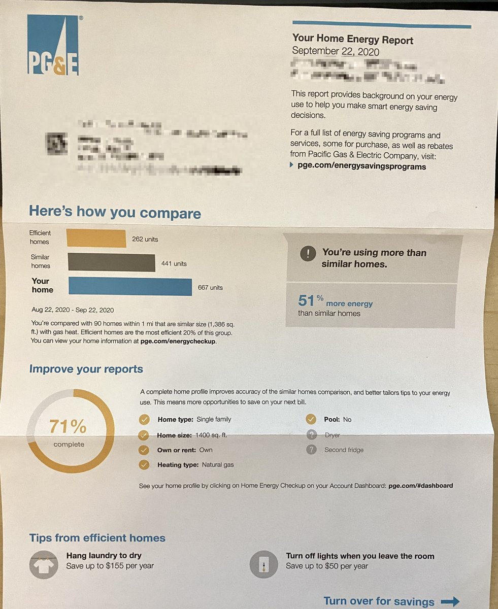 I'm continually shocked how effective this PG&E neighbor-shaming energy usage report still is on me after all these years. At least I updated the dashboard to reflect that yes, we have a dryer, and yes, we have a second fridge.. https://t.co/7XM952nYl9 https://t.co/seawm8j4WE