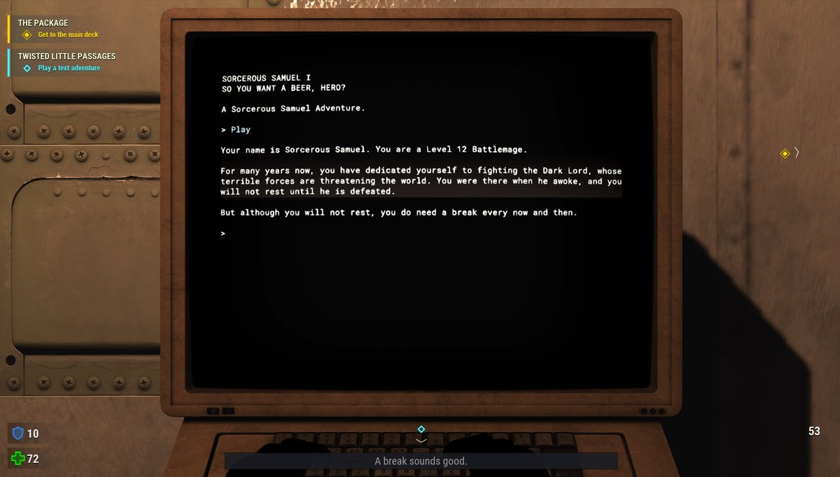 Ok so there's a side mission in Serious Sam 4 where you.. play.. a.. text.. adventure? https://t.co/JCACNMMTPg