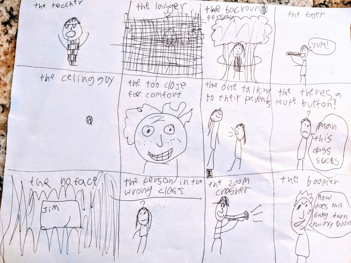 My kid drew a comic about the characters of remote school https://t.co/NdPYDW81pY