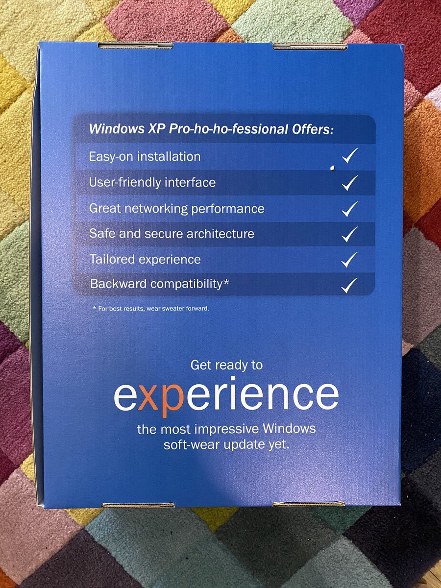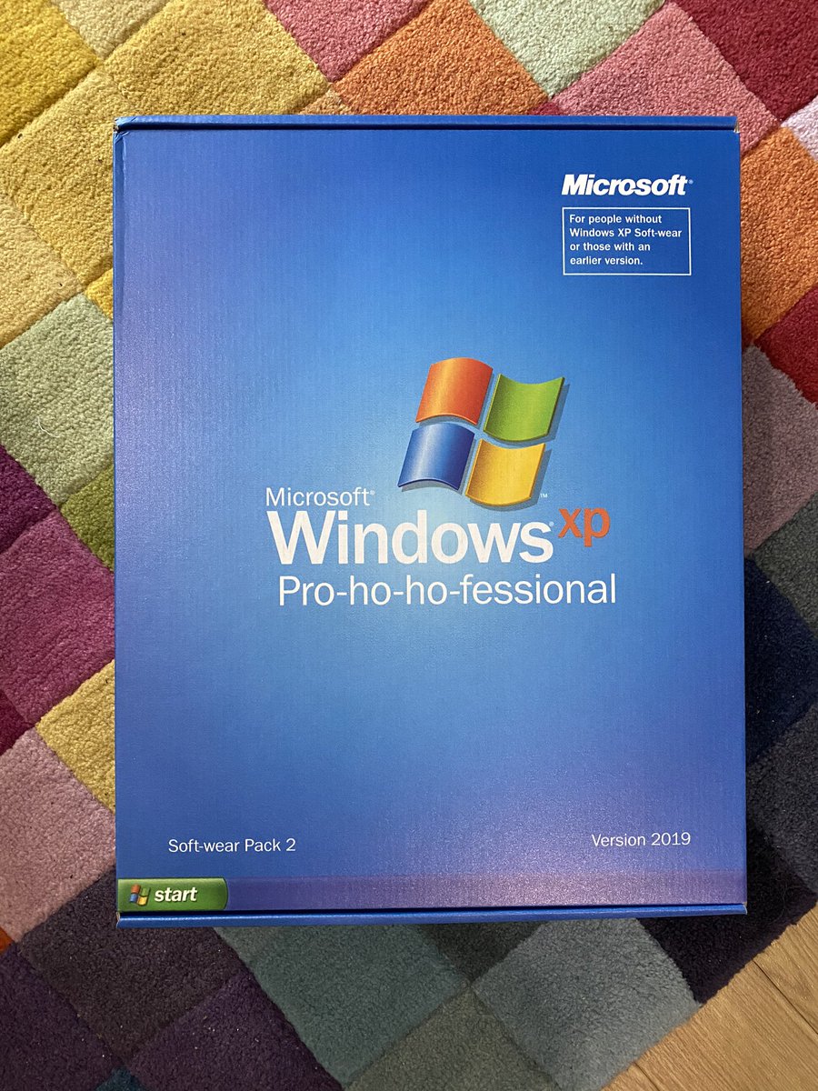 Microsoft’s ugly Christmas sweater is Windows XP this year. It even comes in a softwear box 😂 https://t.co/Oz0lNhryPI