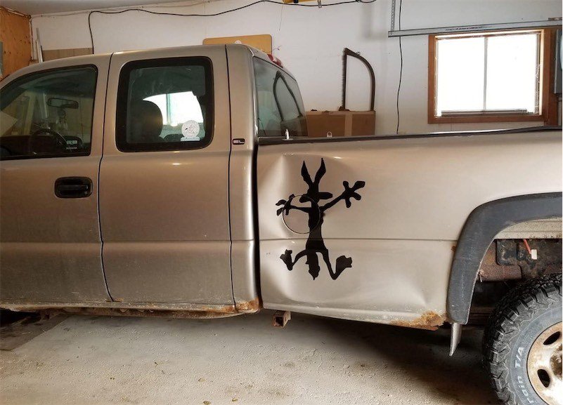 Hilarious decal "fixes" a dented vehicle https://t.co/h06fyhT05l https://t.co/LaDuXra2tZ