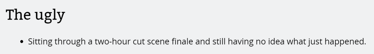@wavyknife very cheesy, particularly that character and those relationships. Sure, she's married to one of the main characters AND a dominatrix AND works as a company psychiatrist for the other main character 🙄