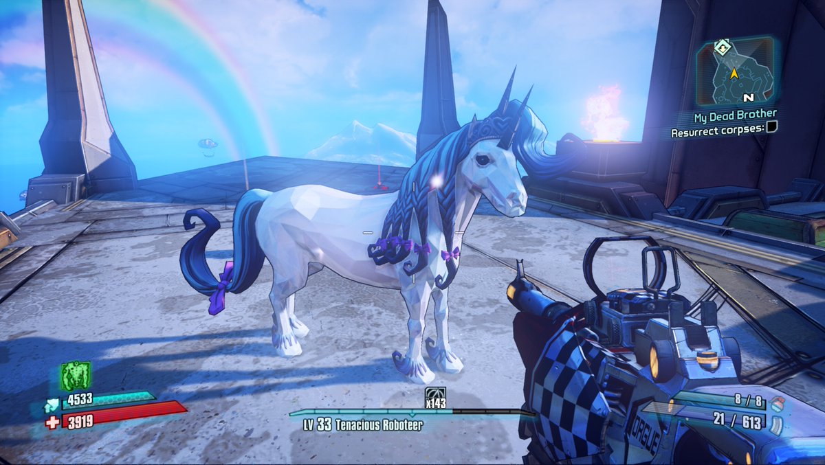 Replayed Borderlands 2 to prep for Borderlands 3, and finally got to meet Butt Stallion. 🦄 That Tiny Tina DLC was especially worth playing through, if you haven't already. https://t.co/DFaBYCLqwD