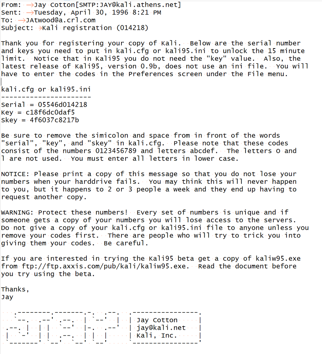 Found my 1996 registration codes for Kali95, so I could play Doom on 'the internet' https://t.co/ialaA3vJtj https://t.co/VL9JiN3d5q