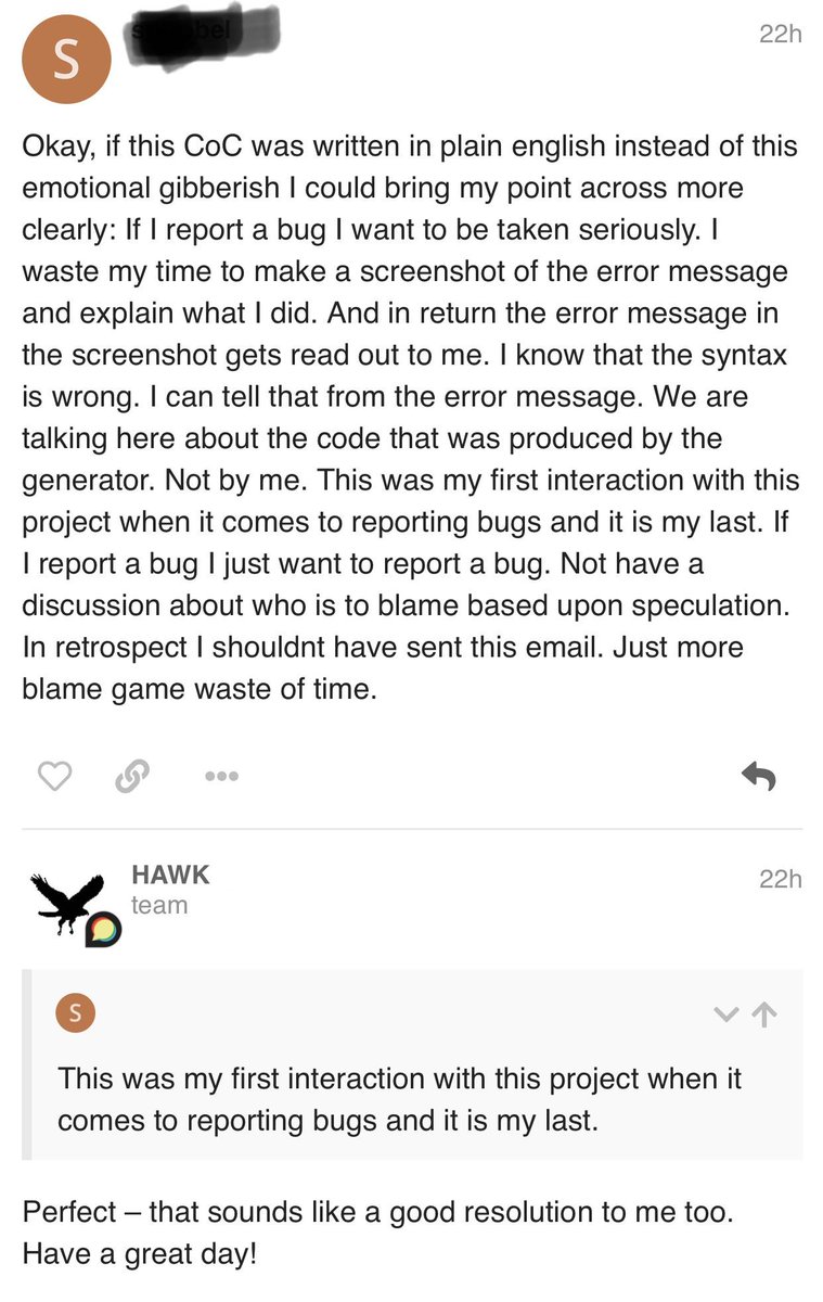 Anyone who abuses our team gets fired as an open-source user.. even as a paying customer. Cheers @ILOVETHEHAWK 👌 https://t.co/NOcA8Gy0z9