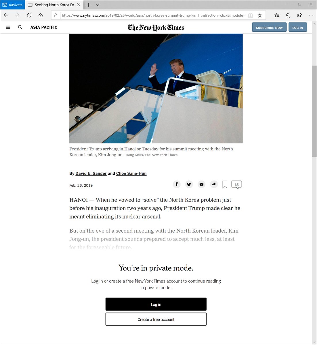 Wow. Apparently private mode browser shaming is now a thing. I can *only* repro this in MS Edge though, not in Chrome or Firefox, which is very very odd to me. https://t.co/rAno4ZLWaZ