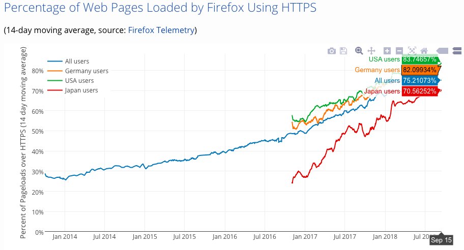 Firefox telemetry says 75% of page requests are now HTTPS! Has your company donated to @letsencrypt yet? If not, why not? https://t.co/Mdf5HUfxlc