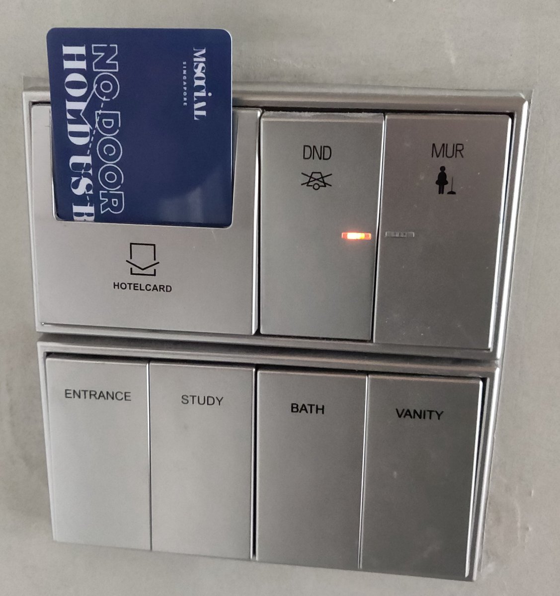 Kinda cool, at this hotel you dock your room card to enable the lights and call / DnD buttons. And you never forget your card when leaving the room! https://t.co/73SaVNG5Zz