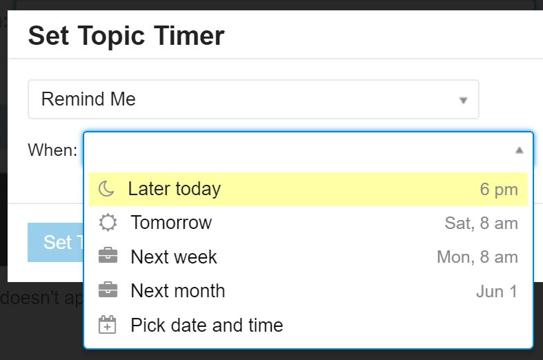 @johnolilly anything without a scheduled date on it, of some kind, is _highly_ suspect. Also .. new @discourse feature we just shipped! https://t.co/nK8IHMba79