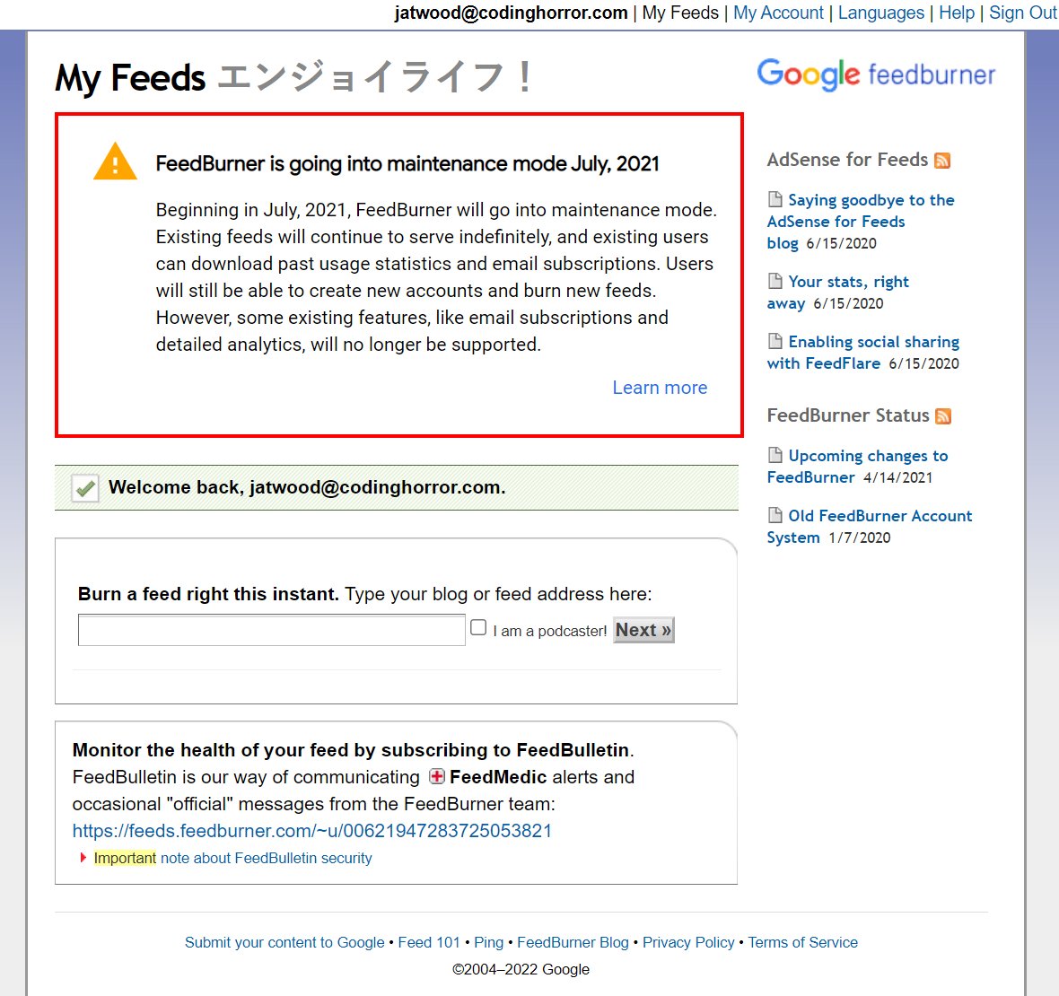 @depoisfalamos yeah, sorry -- feedburner is slowly dying (visit the feedburner website to see what I mean) and I had to switch to something else to notify people of new blog posts via email