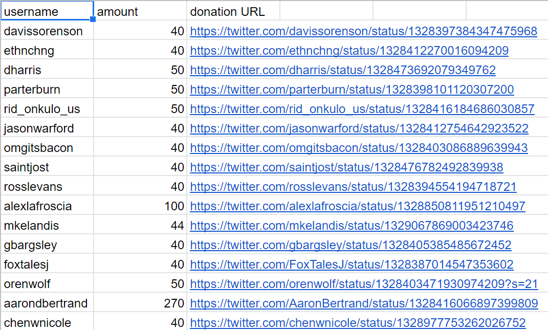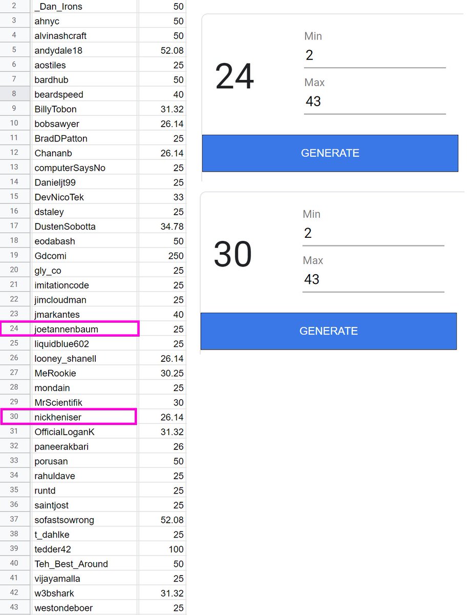 Complete! We raised almost $1700 in this round, thank you everyone. Winners are @joetannenbaum and @nickheniser 🥇🥇 https://t.co/C2uYBMVVGK