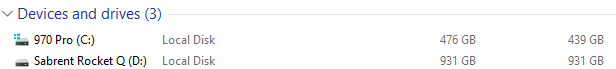oops 1TB Sabrent Rocket Q M.2 data drive, you know what I mean -- it's fast! The *only* part of this build which wasn't new is the video card, which was a transplant, originally ordered April 2018.