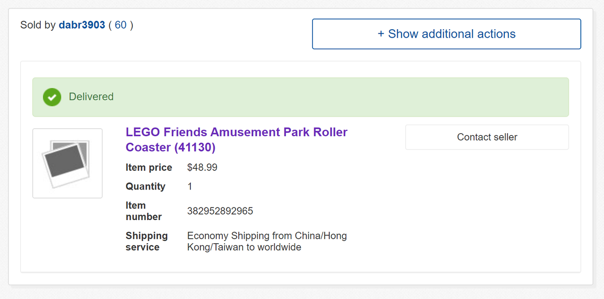 @djbaskin there was no way to tell from that ebay ad, other than the kinda-too-good-to-be-true price, that you would be getting a clone and not the real LEGO product. *Every single picture* showed the real LEGO box, build, product #, etc.