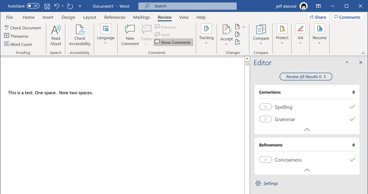 @SwiftOnSecurity @seesharp @profalankchen @Office @JenMsft I'm probably at super vanilla out of the box defaults, I never mess with settings in my old age