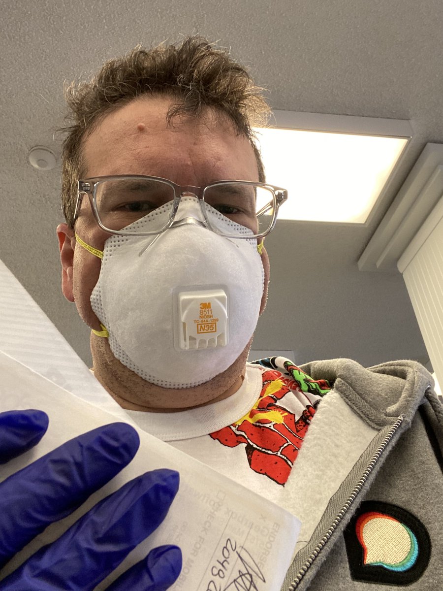 and this is me, cashing an old school physical hosting check for Discourse yesterday (it's a 6+ months old wildfire era re-used N95, don't @ me) https://t.co/3kldb0I1lU