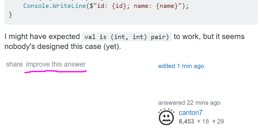 @JustinTPriest @MeganRisdal @KeirRice @juliasilge right, if it's an entirely different solution then it should be an answer, shouldn't it? If the programming can be improved, why not submit the change as a pull request, which is conceptually what an edit is for an anon or new user?